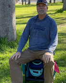 The main body constructed of Dupont's 1000 Denier Cordura and a heavy-duty bottom made of two layers of 12 ounce reinforced truck vinyl. It includes a color-matching Backpack Harness Strap and is designed to withstand the day-to-day abuse of the game's top touring professionals and best amateurs. Like every Revolution Disc Golf bag, the back is generously padded to keep you comfortable and focused.