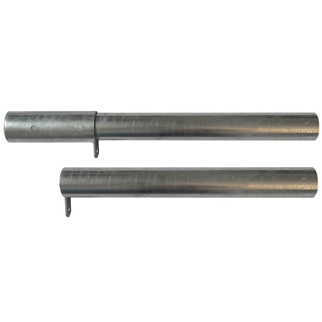 Mach II Anchor and Collar for multiple pin placements for Boxed Mach II Series baskets. 18″ x 2 1/8″ tubing to be cemented into the ground for permanent use. Locking Collar that attaches to the Mach II basket’s center support pipe. 21″ x 2 1/8″ tubing, attaches to anchor with welded locking tab. Lock not included.