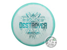 The Destroyer is a very fast stable long distance driver. This disc is much like a faster Wraith, but with a little more high and low speed stability. Great disc for sidearm throwers and those with lots of power. Can handle headwinds and throws with off axis torque. Not suggested for beginning players.