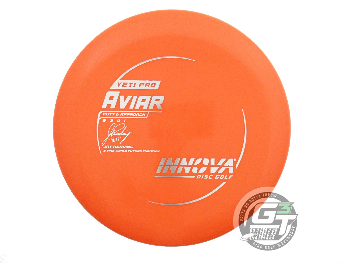 The Yeti Pro Aviar is a straight flying putter that works well on the course too. We've developed the Yeti in a firm, grippy blend of Pro blend of plastic. It's somewhere between DX and R-Pro in both grip and firmness. The unique slightly concave top allows for a lower profile and a straighter flight than our other big bead models (KC Pro, JK Pro & Aviar Driver). The grippy firm plastic feels great in your hand in any weather.